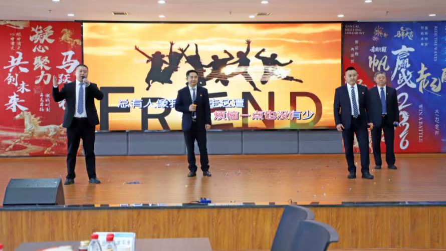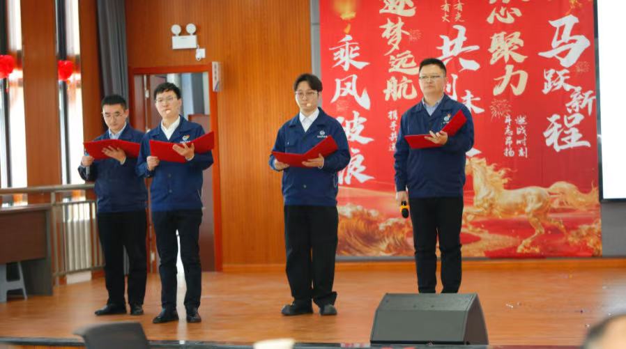 马显红向全体职工及家属致以新春的问候和美好的祝福。他指出,2025年,公司秉持“124356”工作思路,在复杂严峻的市场环境中勇毅前行,顶住了市场波动、行业内卷等多重压力,全体职工凝心聚力、承压奋进,书写了一段攻坚克难的精彩篇章。2026年,是“十五五”规划的开局之年,也是公司建厂60周年,要牢牢把握高质量发展主题,全力拓市场、抓创新、深改革、强管理、防风险、惠职工。要继续传承“团结、诚信、务实、创新”的企业精神,以坚如钢铁的意志、勇毅前行的决心,在高质量发展的道路上“并肩作战”,一起为梦想奋斗,为幸福打拼,把宏伟愿景变成美好现实。